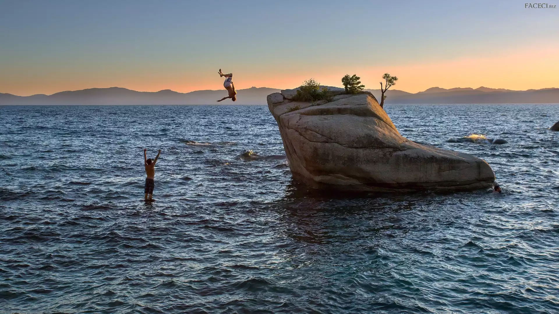 Skała, Zabawa, Morze, Ludzie - faceci.biz